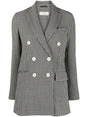 check-print double-breasted blazer from CIRCOLO 1901 featuring black/white, wool blend, check pattern, notched lapels, double-breasted button fastening, long sleeves, buttoned cuffs, chest welt pocket, side welt pocket, side flap pocket and central rear vent. Pied de poul double-breasted jacket Size and Fit - This piece fits true to size. We recommend you get your regular size. Model is 1,75m / 5ft 8in wearing size 40 (IT)