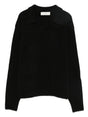 grey V-neck polo collar long sleeves knitted construction straight hem Wool blend polo sweater