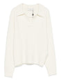 light beige polo collar V-neck long sleeves knitted construction Wool blend polo sweater