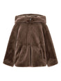 brown faux fur zip fastening hooded neckline quilted panel Teddy blouson jacket