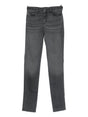 medium grey five-pocket styling button fly belt loops straight leg embroidered logo patch Skinny denim jeans