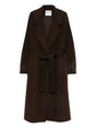 brown floral embroidery belted waist notched lapels long sleeves double-breasted design Belted long coat