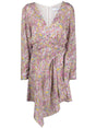 graphic-print wrap minidress from IRO featuring pink, all-over graphic print, wrap design, V-neck, tied waist, long sleeves and draped detailing. Taro short wrap dress Size and Fit - This piece fits true to size. We recommend you get your regular size. Model is 1,75m / 5ft 8in wearing size 36 (FR)