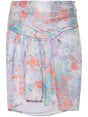 lavender purple/multicolour silk satin weave abstract pattern print ruffled detailing gathered detailing concealed side zip fastening thigh-length asymmetric hem full lining Floral print silk mini skirt Size and Fit - This piece fits true to size. We recommend you get your regular size. Model is 1,75m / 5ft 8in wearing size 36 (FR)
