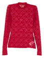 red patterned long sleeves mock neck semi-sheer finish straight hem Monogram high-neck top