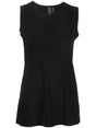 black jersey knit boat neck sleeveless straight hem Crewneck top