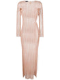 rhinestone-embellished sheer maxi-dress from SANTA BRANDS featuring blush pink, cotton blend, rhinestone embellishment, semi-sheer construction, round neck, long sleeves, side slit and mid-length. Rhinestones embellished long dress Size and Fit - This piece fits true to size. We recommend you get your regular size. Model is 1,75m / 5ft 8in wearing size UNI