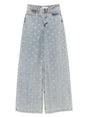light blue concealed fly and button fastening classic five pockets crystal embellishment belt loops Crystal embellished denim jeasn