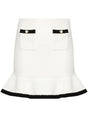 white/black crochet knit sequin embellishment contrasting ribbed trim elasticated waistband slim cut two front patch pockets peplum hem thigh-length mesh lining Crochet mini skirt Size and Fit - This piece fits true to size. We recommend you get your regular size. Model is 1,75m / 5ft 8in wearing size S