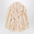Beige furry-effect fabric jacket by Sportmax, featuring wide lapels, tubular fabric belt with metal tips, long sleeves, satin lining, and oversized fit. Size and Fit - Model wears size S Model measurements: Height: 178 cm Chest: 83 cm Waist: 63 cm Hips: 91 cm