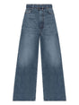 blue high-rise waist belted design front button fastening two side pockets wide flowy legs Wide-leg cotton denim jeans Size and Fit - .