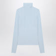 Light blue jersey knit sweater by Sportmax, featuring long sleeves, high neck, and slim fit. Size and Fit - Model wears size S Model measurements: Height: 178 cm Chest: 89 cm Waist: 62 cm Hips: 88 cm