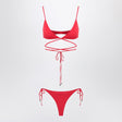 Two-piece bikini by The Attico in red stretch fabric, featuring a bra with long ties to be knotted around the bust, contrasting logo on the back, and a giftable panty with side ties with metal tips. Size and Fit - Model wears size S Model measurements: Height: 179 cm Chest: 82 cm Waist: 65 cm Hips: 90 cm