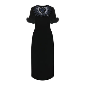 – Composition: 92% Viscose 18% Silk – Fox fur trim – Short sleeves – Paillettes detail – Concealed back zip fastening – Fully lined – Regular fit – Model is 1.78m wearing size 42 – Made in Italy –