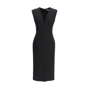 The V-Neck Pencil Dress by Givenchy embodies a sleek, sculptural femininity. Crafted from wool crepe, this sleeveless midi design features a deep V neckline and a close-fitting silhouette that accentuates the body’s contours. Structured detailing enhances its tailored shape, while front and back slits bring subtle fluidity and allure. Finished with raw edges and an invisible back zip closure, this dress captures Givenchy’s refined minimalist elegance.