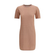Fendi’s midi Dress is a celebration of elegance and femininity with a distinctive twist. Featuring a fitted silhouette, it features a crew neck and short sleeves for an essential and refined look. Made from a blend of cotton and viscose, it is embellished with the iconic all-over micro FF pattern in a delicate light pink hue. Small side slits and a ribbed hem complete the design, adding comfort and modernity to a garment perfect for any occasion.