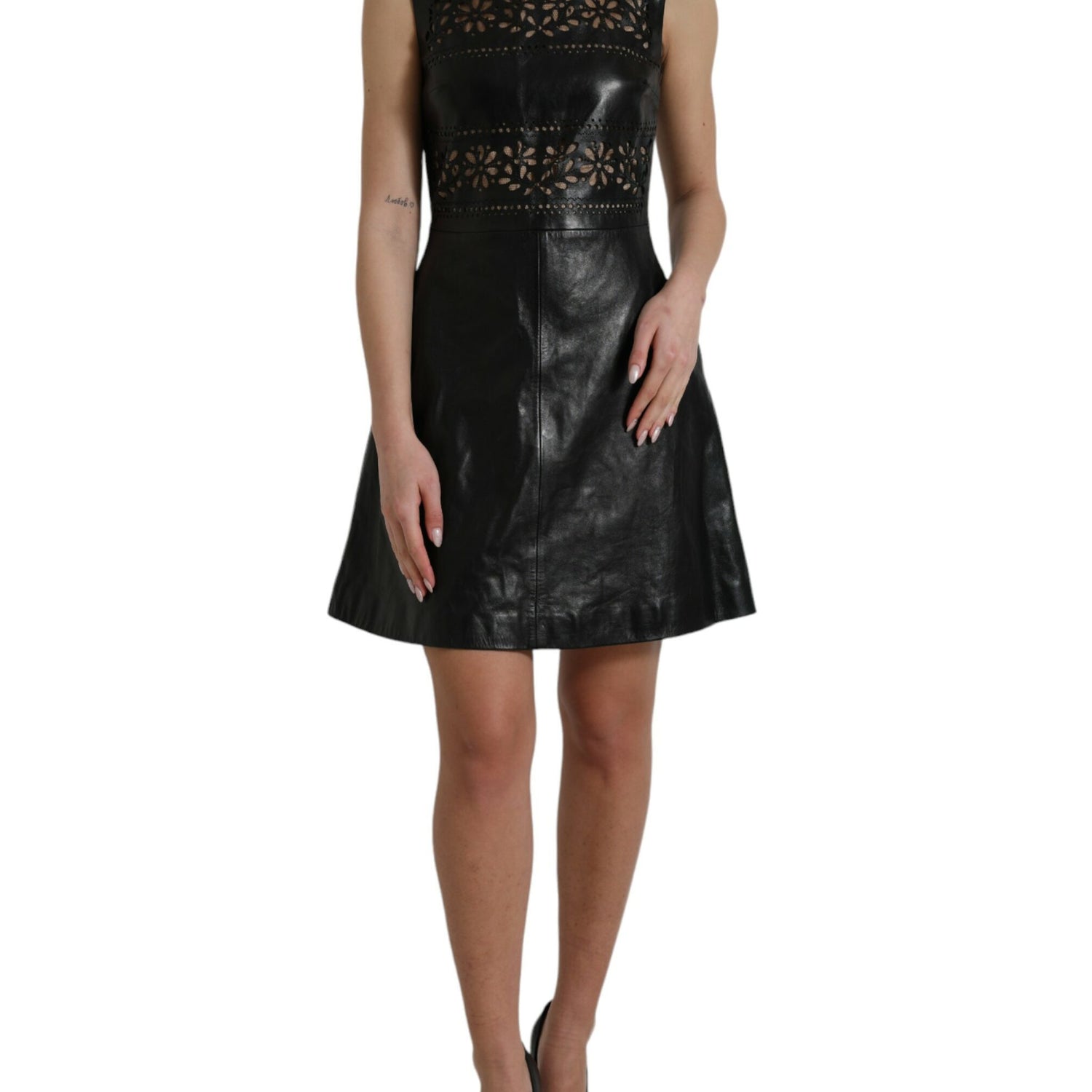 Valentino Shiny Black Nylon Cut Out A-line Mini Dress