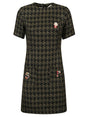 Short green dress, short sleeves, hidden zip closure, crewing, two in front pockets. Houndstooth wool blend short dress Size and Fit - This piece fits true to size. We recommend you get your regular size. Model is 1,75m / 5ft 8in wearing size S