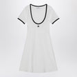 Mini dress by Courrèges in white cotton, characterized by a wide round neck, short sleeves, contrasting black edges, and a small logo patch on the front. Size and Fit - Model wears size S Model measurements: Height: 178 cm Chest: 89 cm Waist: 62 cm Hips: 88 cm