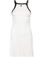 white/black cotton soft jersey halterneck contrasting border buckle-detail shoulder strap sleeveless appliqué logoat the chest internal logo tag thigh-length straight hem Buckle contrast short dress Size and Fit - This piece fits true to size. We recommend you get your regular size. Model is 1,75m / 5ft 8in wearing size S