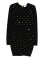 black gold embellishments quilted effect long sleeves round neck Knitted mini dress