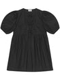 black organic cotton poplin texture front tie fastening round neck short puff sleeves thigh-length This item is made from at least 50% organic materials. Learn more about what makes a product Conscious on our Conscious Criteria page Organic cotton mini dress