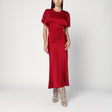 Fuchsia pink viscose satin midi dress by Victoria Beckham, featuring short flared sleeves, a V-neckline at the back, a rear zip closure, and a gathered detail at the front waist. Size and Fit - Model wears size 8 UK Model measurements: Height: 178 cm Chest: 89 cm Waist: 62 cm Hips: 88 cm