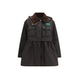 The waxed peplum Jacket by Barbour x GANNI blends British heritage with Scandinavian playfulness in a versatile, transformable design. The elongated silhouette features a detachable peplum skirt that zips off to reveal a shorter cropped shape, offering two looks in one. Barbour’s iconic waxed finish and tartan lining meet GANNI’s bold identity, highlighted by the dual-logo patch at the chest. A modern yet vintage-tinged piece, perfect for refreshing seasonal wardrobes with character and effortless style.