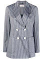 pinstripe-pattern double-breasted blazer from CIRCOLO 1901 featuring blue-grey, cotton, pinstripe pattern, peak lapels, double-breasted button fastening, long sleeves, chest welt pocket and two front patch pockets. Striped double-breasted jacket Size and Fit - This piece fits true to size. We recommend you get your regular size. Model is 1,75m / 5ft 8in wearing size 40 (IT)
