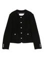black pearl buttons patch pockets round neck long sleeves button fastening Wool tweed jacket