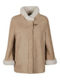 beige shearling trim hook and eye fastening panelled design round neck Leather shealing cape