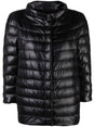 black down-feather filling quilted mock neck concealed front fastening long sleeves Nylon lightweight cape Size and Fit - This piece fits true to size. We recommend you get your regular size. Model is 1,75m / 5ft 8in wearing size 40 (IT)