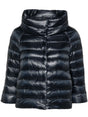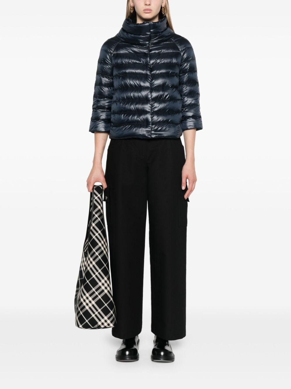 navy blue cotton-blend padded design high neck press-stud fastening three-quarter length sleeves straight hem Sofia nylon cape