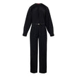 Crewneck, wide neckline adjustable with lace, long sleeves closed with button. Removable thin patent leather belt with GG logo at the waist. Wide leg.