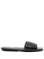 black calf leather logo patch to the front slip-on style square open toe padded branded footbed flat sole This piece comes complete with a protective dust bag. Logo leather flat sandals Size and Fit - Heel 0,4 in / 1 cm