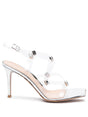 Crystal Fever 85mm sandals from GIANVITO ROSSI featuring silver-tone, calf leather, transparent design, crystal embellishment, buckle-fastening ankle strap, open toe and high stiletto heel. Crystal Crash sandals Size and Fit - Heel 3,5 in / 9 cm