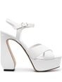 platform sculpted-heel sandals from Si Rossi featuring white, leather, platform sole, high sculpted heel, buckle-fastening ankle strap and open toe. Leather heel sandals Size and Fit - Heel 5,3 in / 13,5 cm; Platform 1,6 in / 4 cm