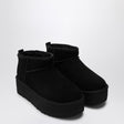 UGG ankle boots in black reversed sheepskin and suede, featuring round toe, rear pull tab, overlock stitching, rear suede patch with logo lettering and rubber platform sole. Size and Fit - Leg height: 8,9 cm / Plateau height: 5,1 cm
