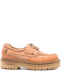 beige and orange lace-up fastening ridge rubber sole debossed logo Rock leather boat shoes Size and Fit - HEEL 4,5 cm.