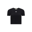 Cotton T-Shirt by Fendi, all-over ribbed design, contrasting embroidered iconic brand monogram on front, monochrome design, slim fit.