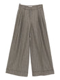brown pinstripe pattern high waist front pleats button fly Wool flannel trousers