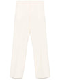 white virgin wool blend interlock twill weave flared leg concealed front button, hook and zip fastening belt loops two side slash pockets pressed crease rear jetted pocket Wool flared trousers Size and Fit - This piece fits true to size. We recommend you get your regular size. Model is 1,75m / 5ft 8in wearing size 40 (IT)