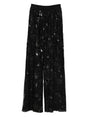 black sequin embellishment floral pattern elasticated waistband wide leg Sequined trousers