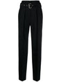 belted tailored trousers from IRO featuring black, wool blend, stretch-design, pleat detailing, pressed crease, high waist, belted waist, buckle fastening, two side slit pockets, two rear button-fastening jetted pockets, tailored cut and straight hem. Benet high-waisted trousers Size and Fit - This piece fits true to size. We recommend you get your regular size. Model is 1,75m / 5ft 8in wearing size 36 (FR)