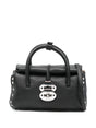 black two top handles silver-tone hardware studded turn-lock fastening detachable shoulder strap Dotta Centauro Baby small leather handbag