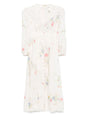 ecru front button fastening concealed rear zip fastening elasticated cuffs all-over floral print Lucky linen midi dress Size and Fit - This piece fits true to size. We recommend you get your regular size. Model is 1,75m / 5ft 8in wearing size 1 (NUM)