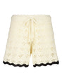 beige adjustable drawstring waist lace detailing contrast trim Rhiannon crochet shorts