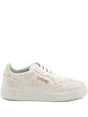 white rhinestone embellishment round toe lace-up closure side logo Meadialist Low leather sneakers
