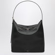 A.P.C. black hammered leather large shoulder bag, featuring an adjustable shoulder strap, zip closure, logo print, and an internal flat pocket. Size and Fit - Width 35 cm x Height 33 cm x Depth 14 cm Handle drop: 20 cm