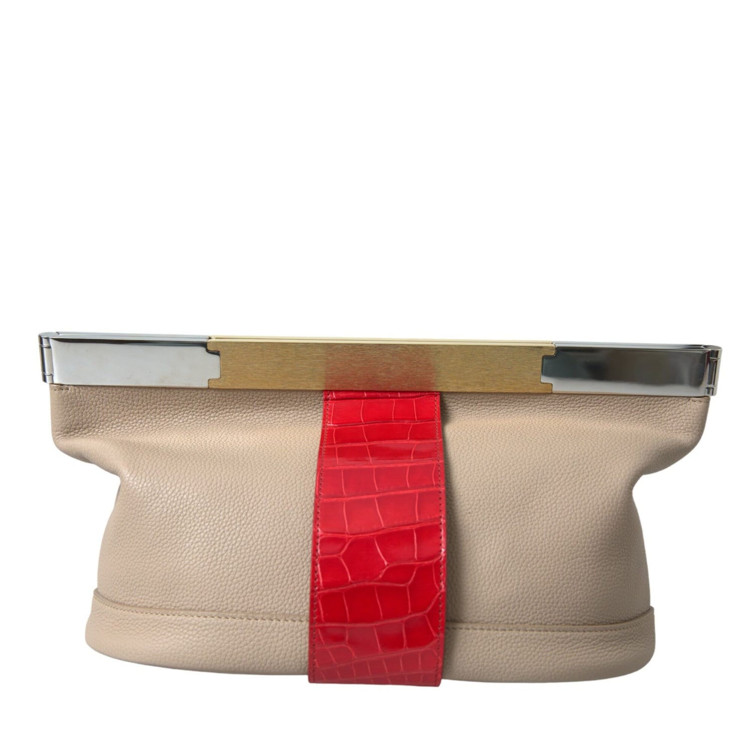 Gorgeous brand new, 100% Authentic BALENCIAGA two tone alligator and calf leather pouch bag.